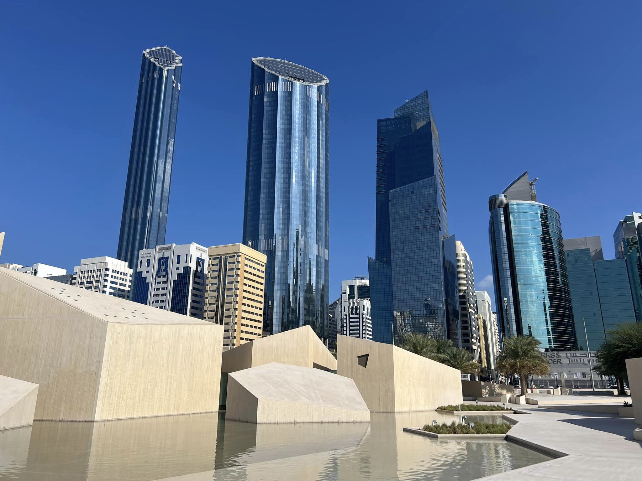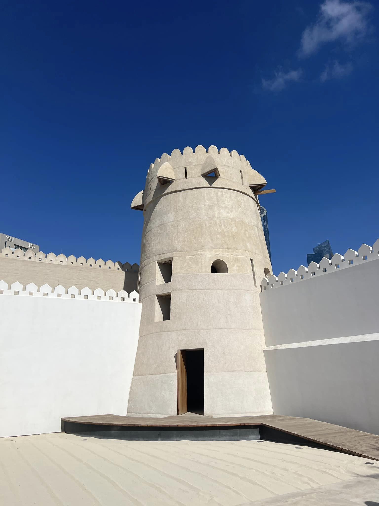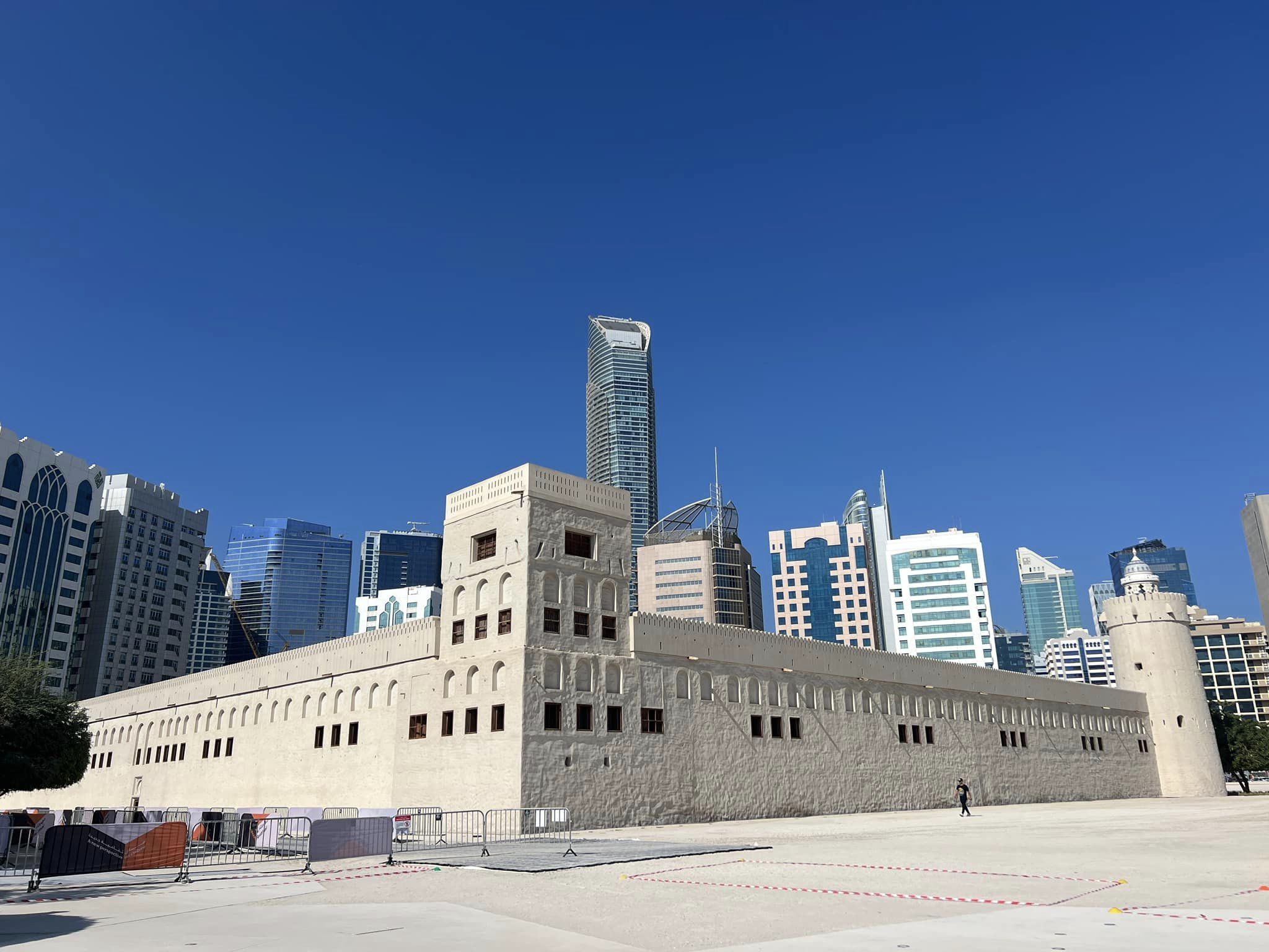 Wir sind zuerst in Abu Dhabi und besuchen gleich mal das alte Fort Qasr Al Hosn. In den 1960ern, vor dem Ölboom, war rund um das Fort nur Wüste, heute stehen die Wolkenkratzer ringsum. Gemeinsam mit dem zugehörigen Museum gewinnt man einen ganz guten Eindruck über die Geschichte und die Kultur von Abu Dhabi, einem der Emirate der VAE.