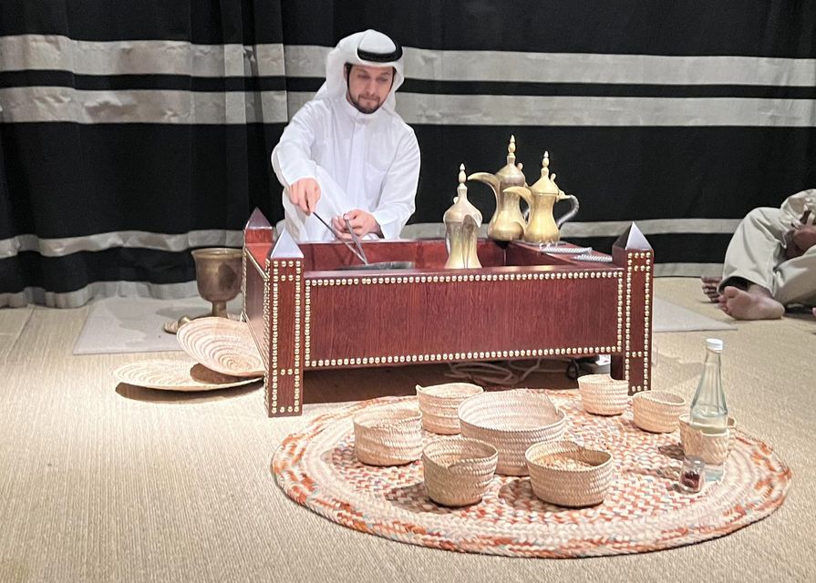 Einer trditionellen arabischen Kaffee Zeremonie können wir im Zuge des Museumsbesuchs ebenfalls beiwohnen.