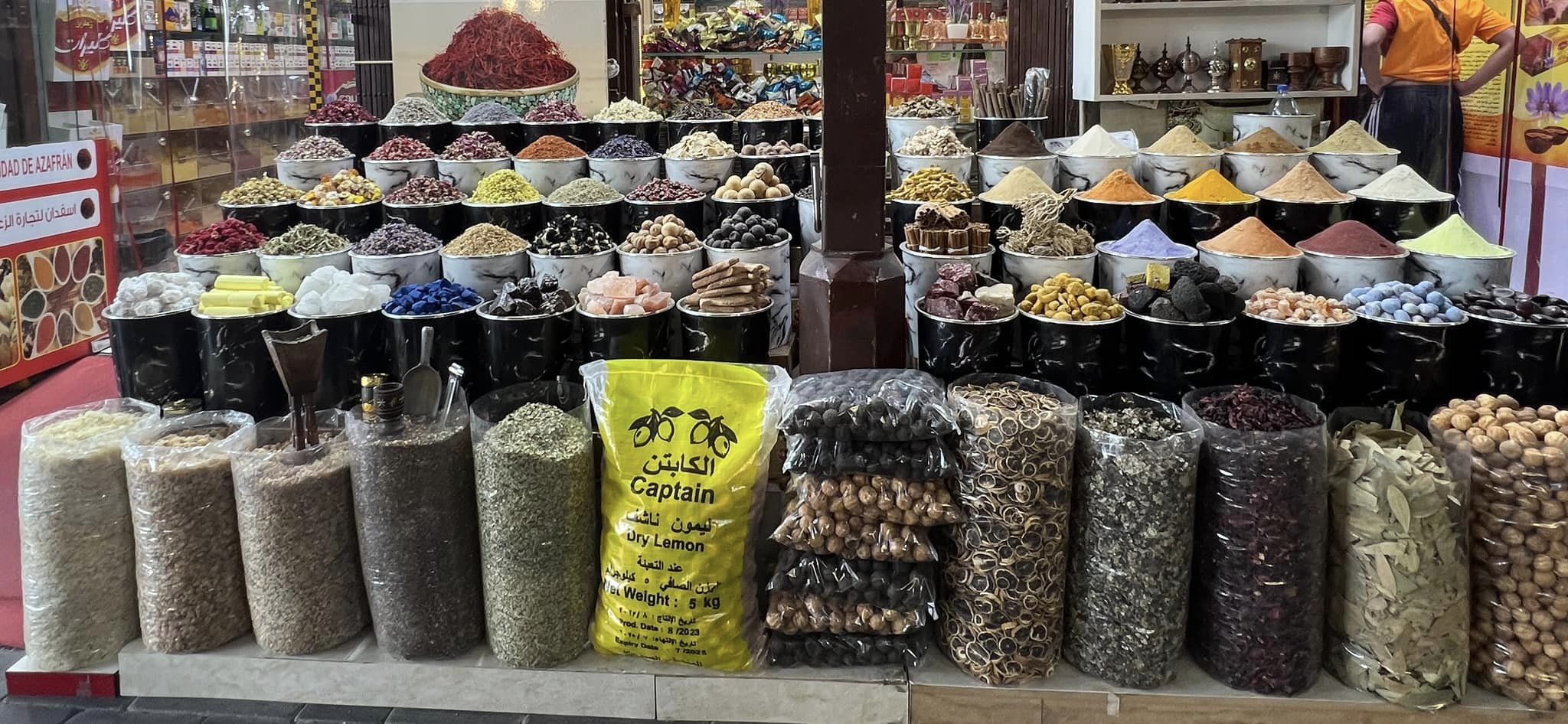Nach Überquerung Dubai Creeks finden wir uns im alten Gewürz Souq (Markt) wieder. Ganz schön intensiv, sowohl die Gerüche als auch die „Proaktivität“ der Verkäufer.