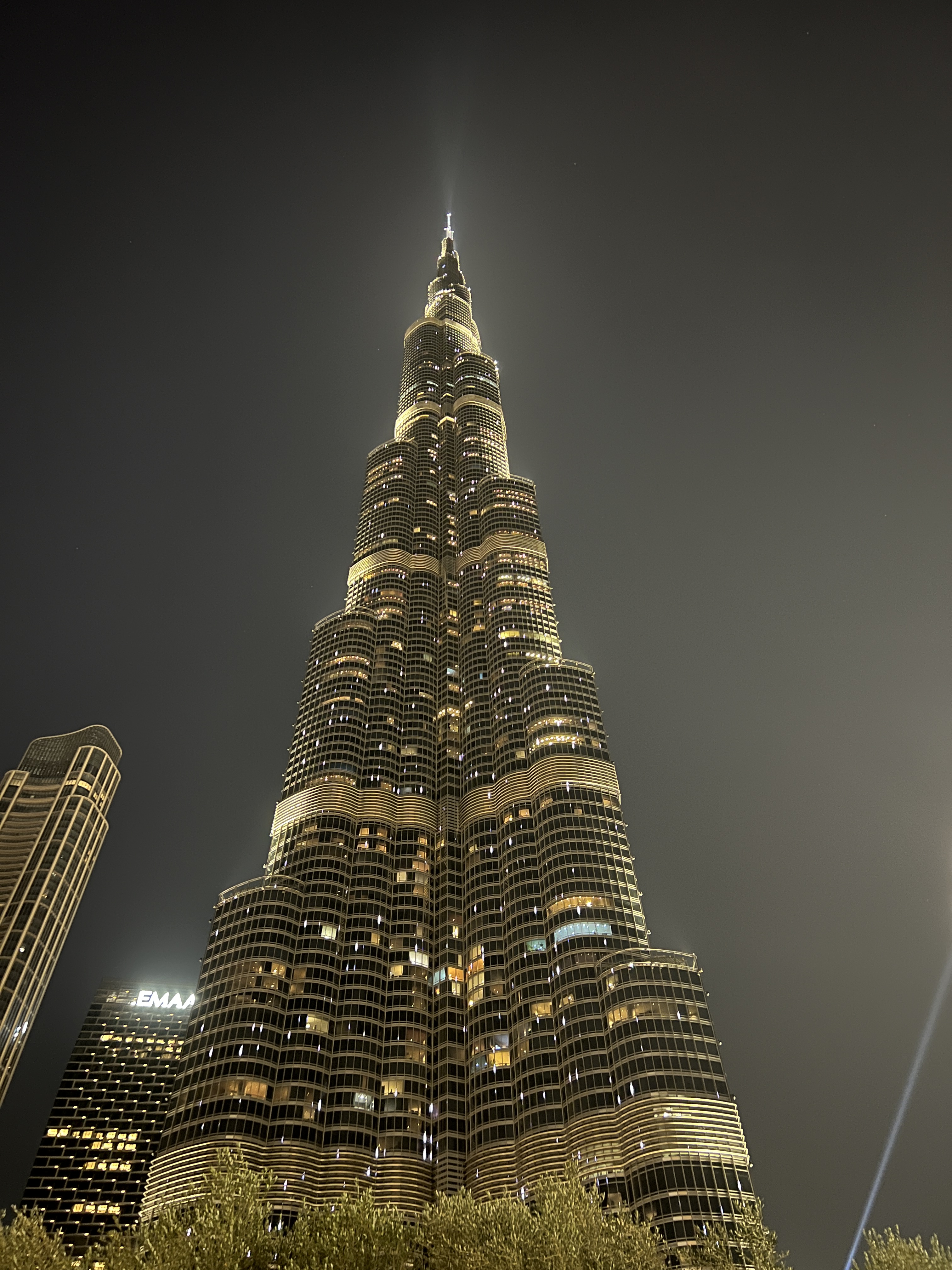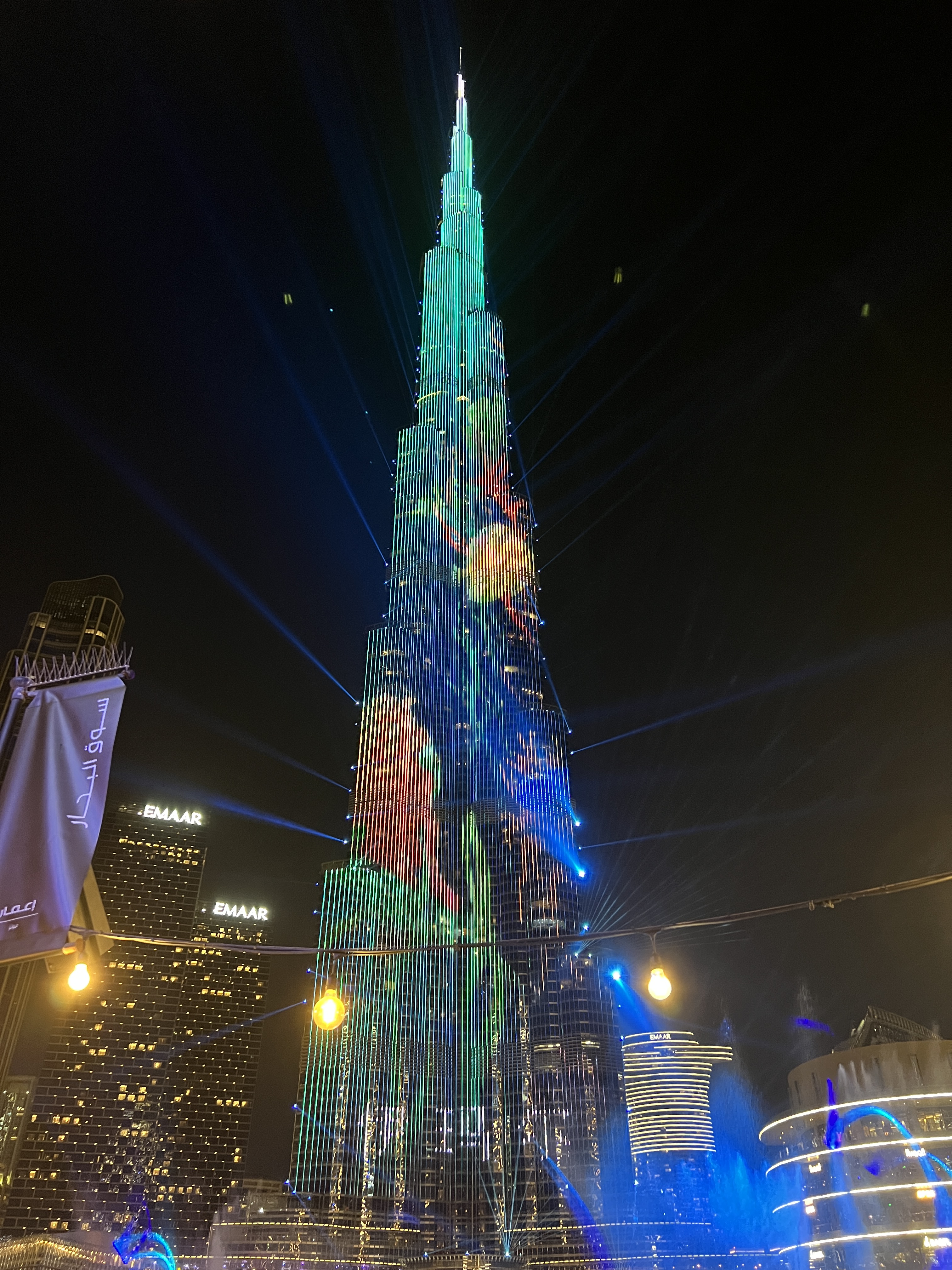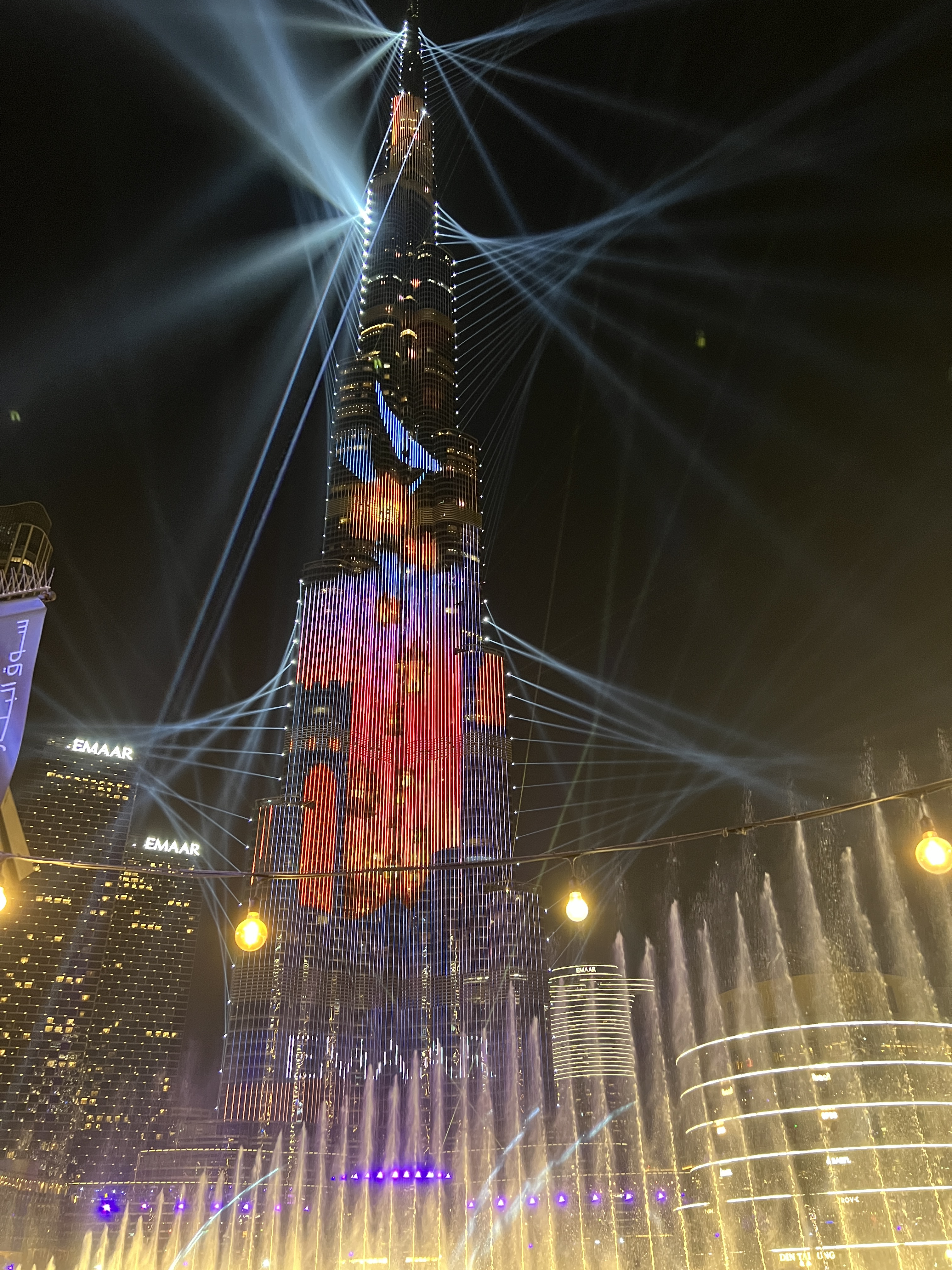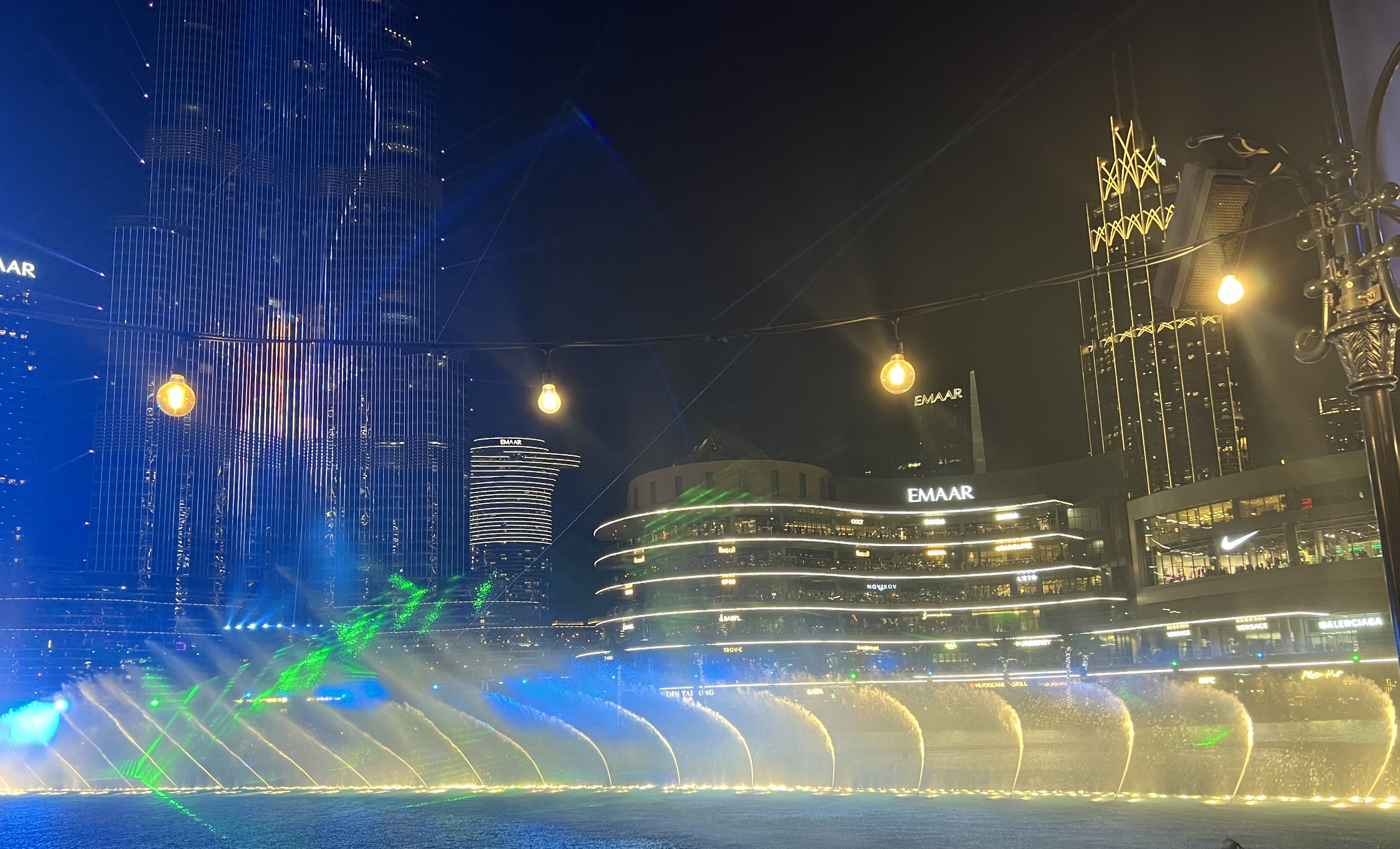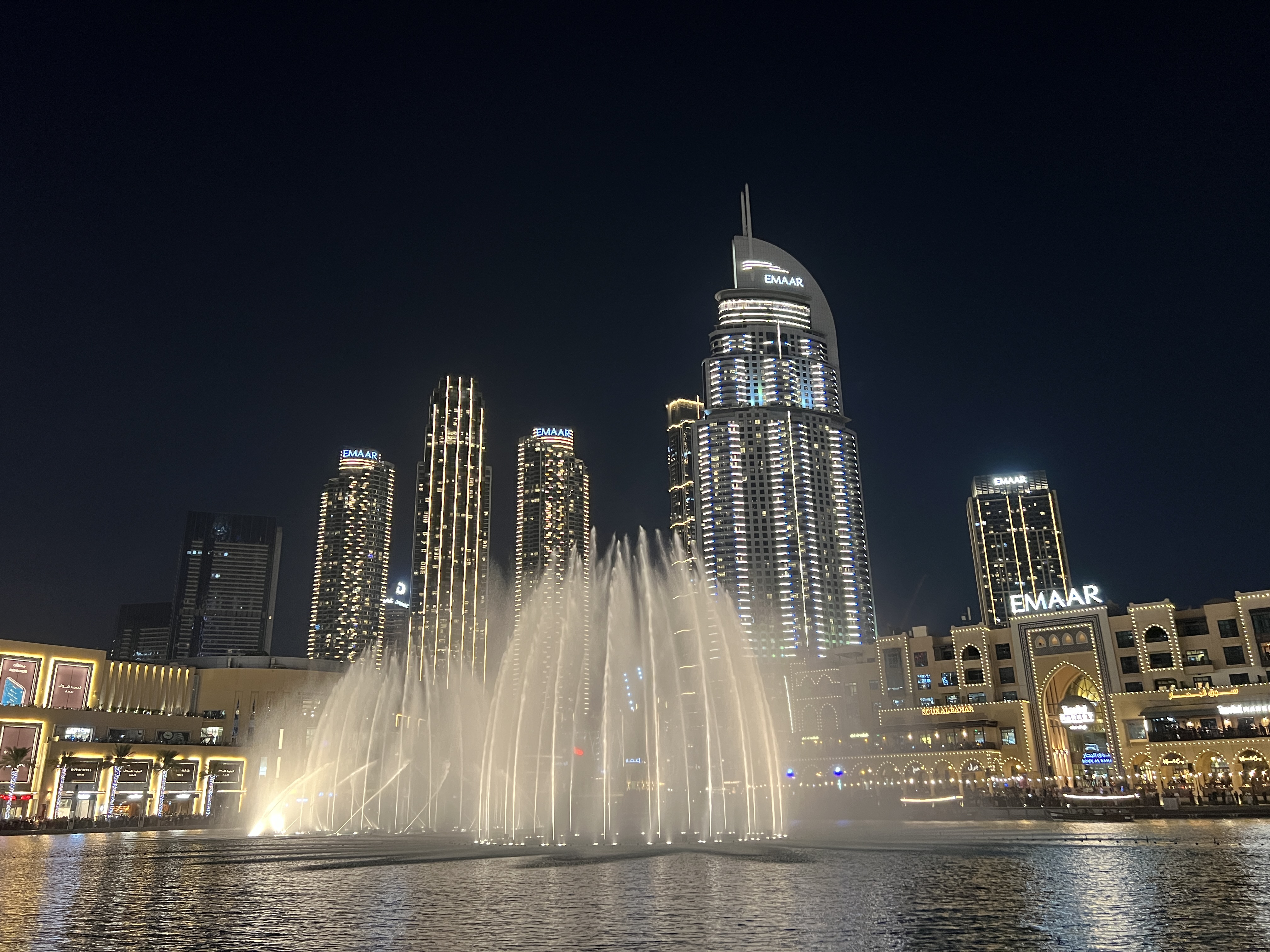 Nach der kurzen Fahrt nach Dubai, geht es Abends gleich mal zum Burj Khalifa um die abendliche Lichter- und Springbrunnenshow zu sehen.