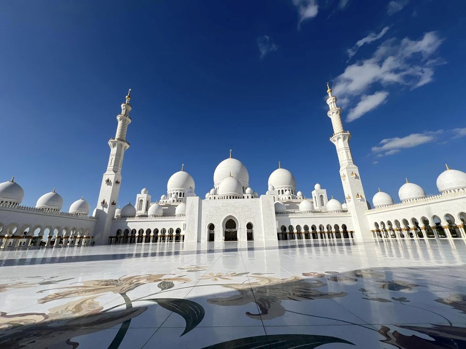 In der Sheikh Zayed Grand Mosque gibt es eine ganze Reihe an Superlativen zu bestaunen. Eine ist der weltgrößte handgeknüpfte Teppich in der Hauptgebetshalle der Moschee. Er besteht aus knapp 2,3 Mrd Knoten, hat eine Fläche von ca 5600m2, wiegt ~35t und wurde von grob 1200 Teppichknüpfern in einem Zeitraum von 2 Jahren geknüpft. Die Moschee ist riesig, aber bei Weitem nicht die weltgrößte.
