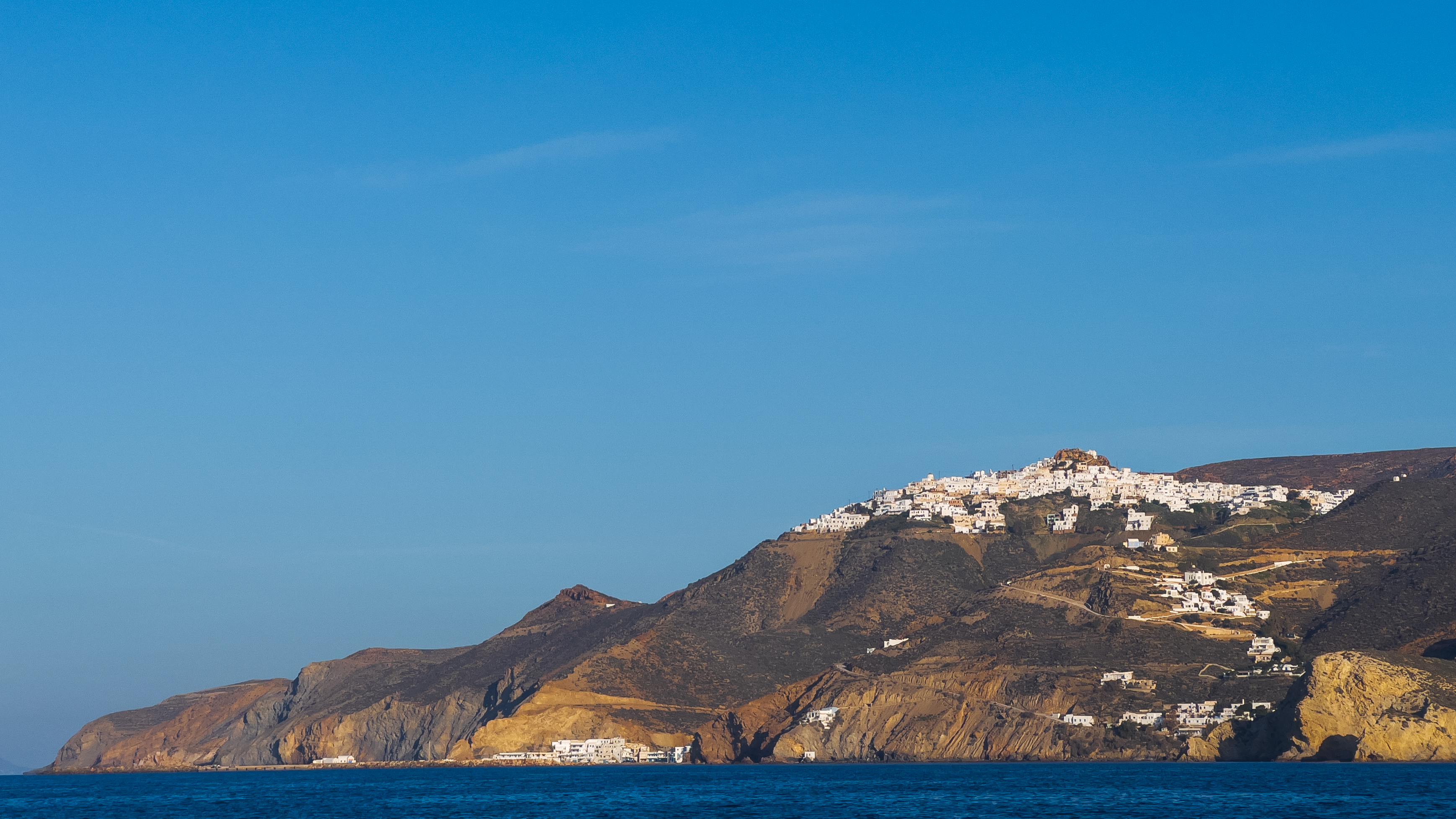 … nach Ios. Auf Ios pausieren wir ein paar Tage. Insgesamt ist es in Griechenland in der „Offseason“ ganz angenehm. Es sind noch kaum andere Touristen oder Segelboote unterwegs. Damit sind die Häfen und Ankerplätze leer und man hat im Unterschied zum Hochsommer seine Ruhe. Trotzdem hat das eine oder andere Restaurant geöffnet, wir können also die griechische Küche genießen.